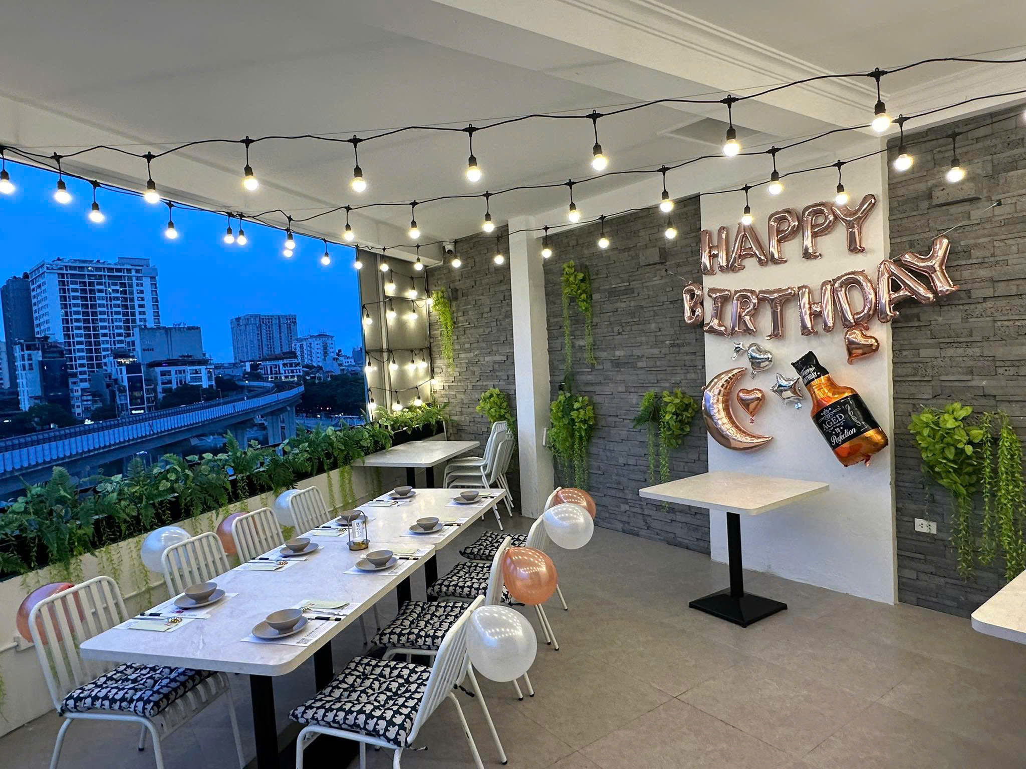 Nhà hàng được thiết kế với không gian đa dạng và đặc sắc: có view hồ xanh đẹp, có rooftop, có nhà kính và cũng có phòng riêng tư